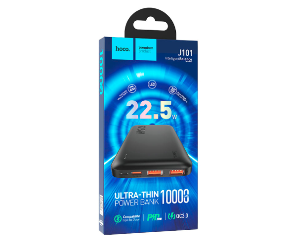Power Bank HOCO J101 10000mAh, USB+Type-C, 22.5W, Black, 0.25kg