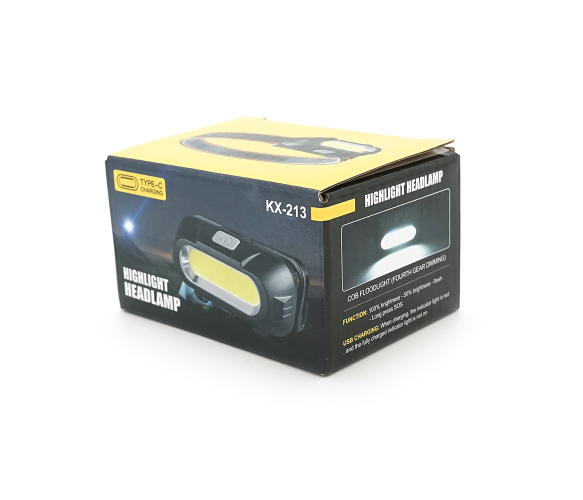 Налобний ліхтарик KX-213R, Cob, Red, 1режим, корпус: пластик, водостійкий, ip44, АКБ 18650, Type-C кабель, BOX