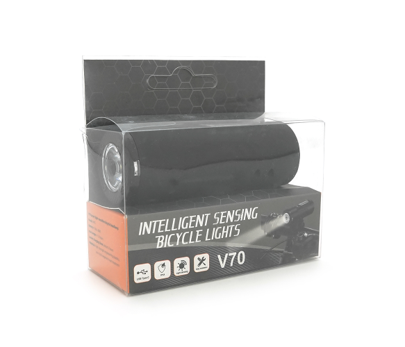 Ліхтарик велосипедний HY-V70, 4 режими, вбудований аккум, індикація заряду, USB кабель, Blister-Box