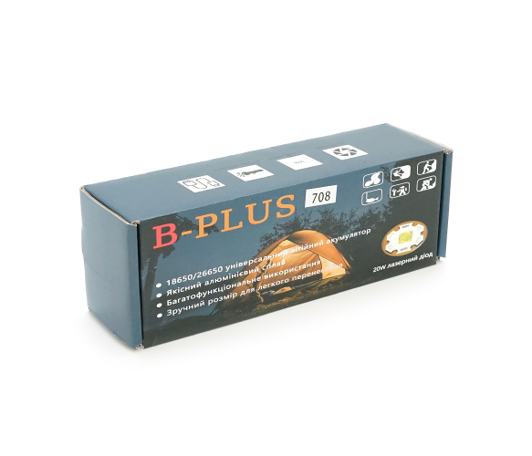Ліхтарик BP-X708 P90, Zoom, 5+2+2 режими, корпус метал, магніт, акум 18650, індикація заряду, USB кабель, BOX