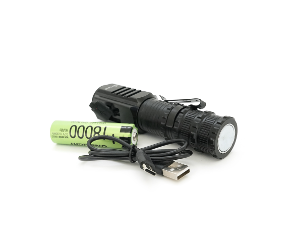 Ліхтарик ручний BP-301R, 3 режими, корпус алюміній, магніт, індикація заряду, акумулятор 18650, кабель USB, BOX