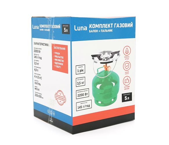 Газовий балон GL-5 2кг(5л), тиск 18BAR + пальник 20354, Green, Q4