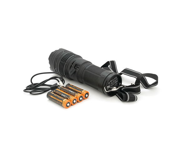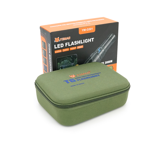Ліхтар пошуковий YEMAO YM-G501 LED PM60, 4 режими, індикація заряду, живлення від 4*18650, IP65, USB кабель, 245х195х90мм, 1,235кг, Black, Чохол+BOX