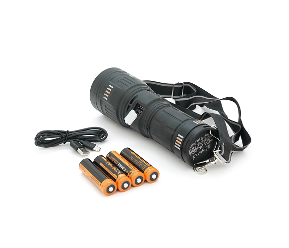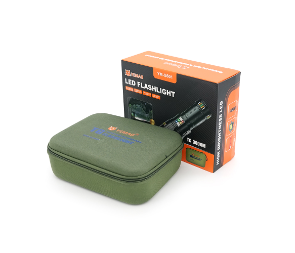 Ліхтар пошуковий YEMAO YM-G601 LED PM60, 4 режими, індикація заряду, живлення від 4*18650, IP65, USB кабель, 245х195х90мм, 1,260кг, Black, Чохол+BOX