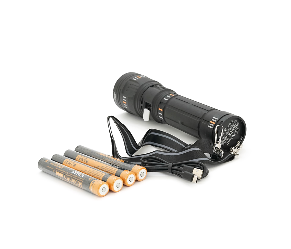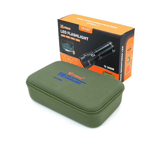 Ліхтар пошуковий YEMAO YM-G600 LED PM60, 4 режими, індикація заряду, живлення від 4(2*18650), IP65, USB кабель, 325х205х100мм, 1,600кг, Black, Чохол+BOX
