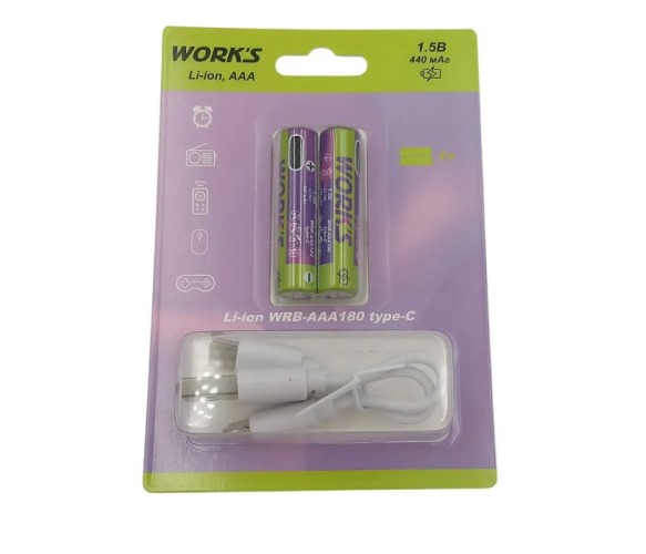 Акумуляторні батареї Li-ion WRB AAA180, тип AАА, 1.5V, ype-c, 440mAh, 1000 циклів, блістер 2шт