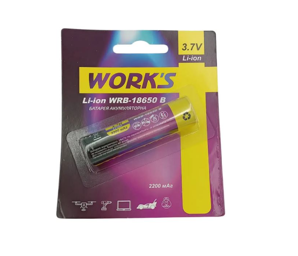 Акумуляторні батареї Li-ion WRB 18650, тип батарейки, клас струму 1С, 3,7V, type-c, 2200mAh, 1000 циклів, блістер 1шт