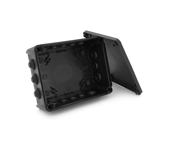 Коробка розподільна герметична/зовнішня 190х150х75мм; IP66 пластик; (РР) 10 гермовводів; чорна/антрацит