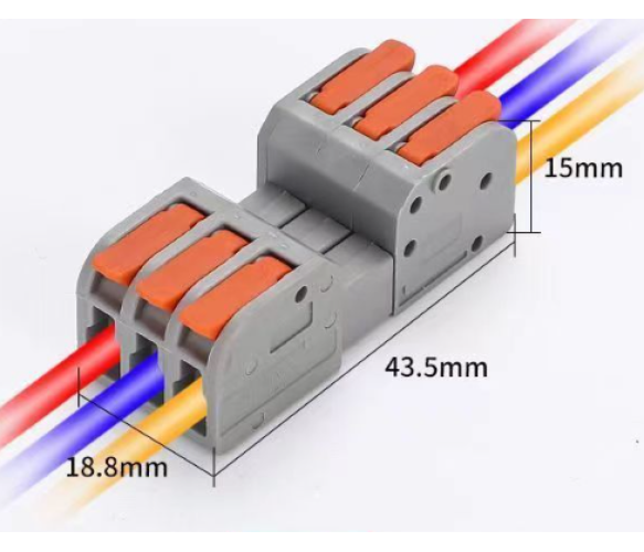 Клема роз'ємна з натискними затискачами 3-провідна DF-2604D, 3-pin, 250V, 32A, 0.2-4.0mm2, 18.8*43.5*15mm, сіра
