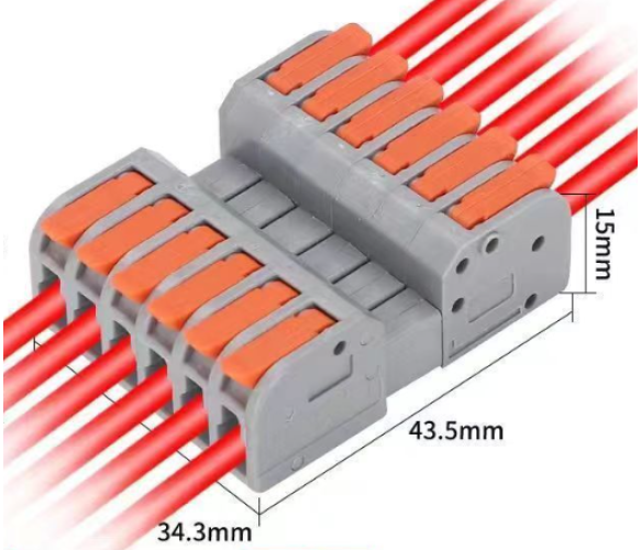 Клема роз'ємна з натискними затискачами 6-провідна DF-2604D, 6-pin, 250V, 32A, 0.2-4.0mm2, 34.3*43.5*15mm, сіра