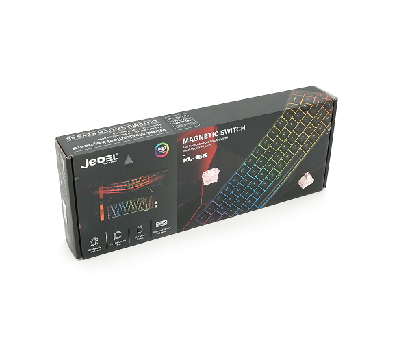 Клавіатура механічна USB JEDEL KL-166, довжина кабелю 170см, RGB підсвічування, (Eng/Укр/Рус), (370х140х55 мм), Black, 68к, Q10