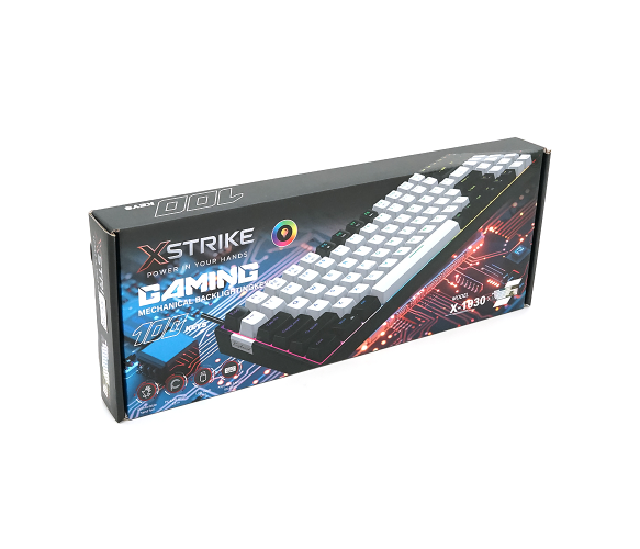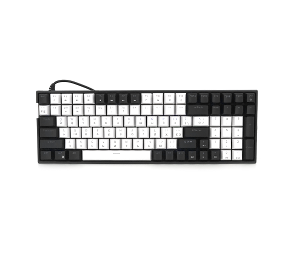 Механічна клавіатура USB XSTRIKE XS-1030, довжина кабелю 150см, RGB підсвічування, Eng/Укр/Рус, 395х150х45 мм, Black/White, 100к, Q20