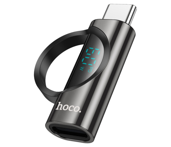 Перехідник HOCO UA32A Type-C(M) => Lighting(F), 60W, індикатор потужності заряду), Black, Box