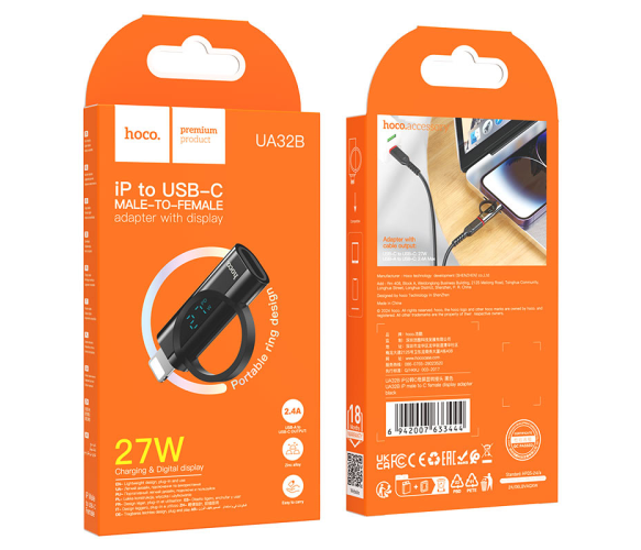Перехідник HOCO UA32A Type-C(F) => Lighting(M), 60W, індикатор потужності заряду), Black, Box