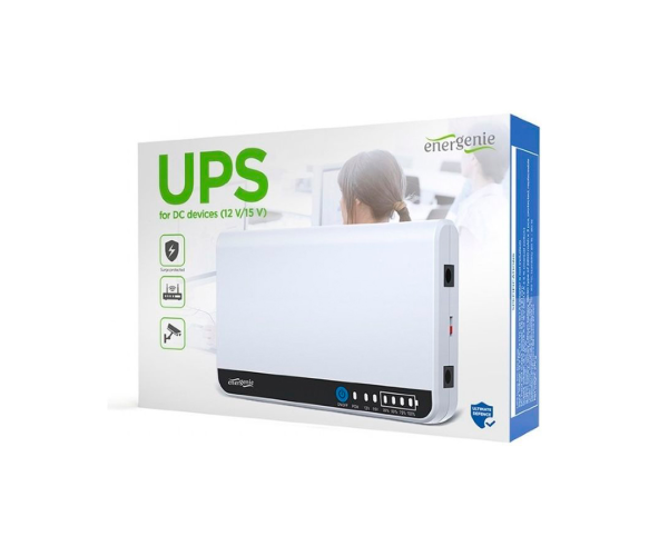 ДБЖ для роутера EnerGenie EG-UPS-DC18, 15W, Output: DC12V, POE-12/15V, 1/1,5A, Li-ion 6600mAh, 160х105х32мм, 270 грам, White, BOX