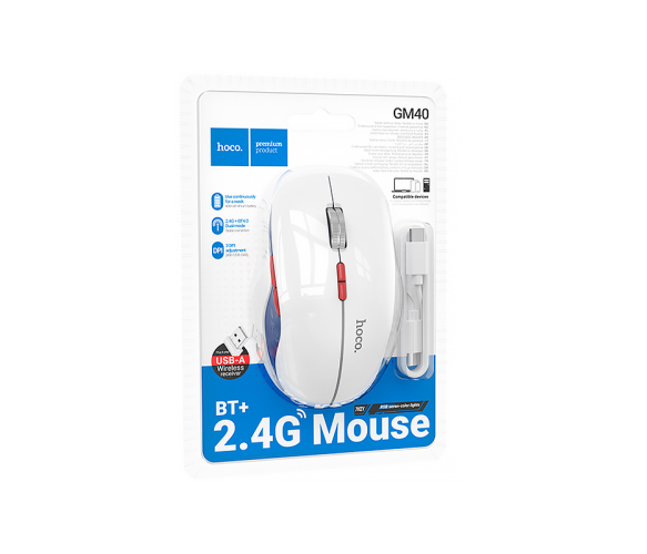 Миша бездротова HOCO GM40, 1600DPI, 2.4GHZ, White, Blister