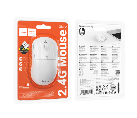Миша бездротова HOCO GM42, 1600DPI, 2.4GHZ, White, Blister