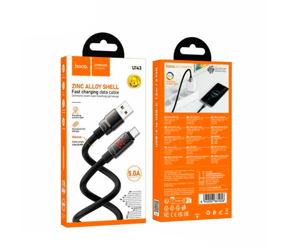 Кабель Hoco U143, Type-C-USB, 5.0A, Black, довжина 1,2 м, BOX