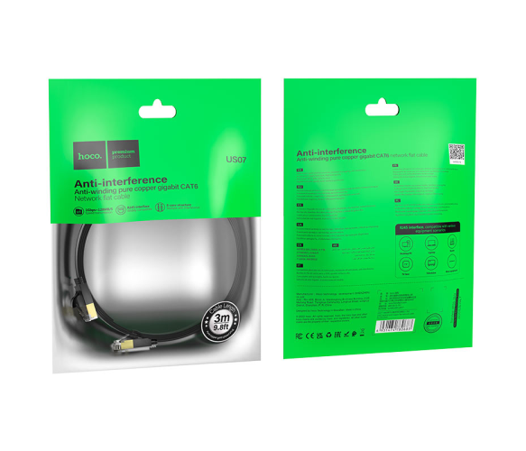 Патч-корд литий HOCO US07, FTP, RJ45, Cat.6, 3,0m, чорний