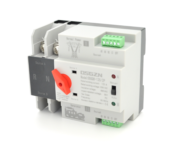 Автомат введення резерву (АВР) двополюсний OSGQ8-125/2P, 230V/125A на DIN-рейку для генераторів