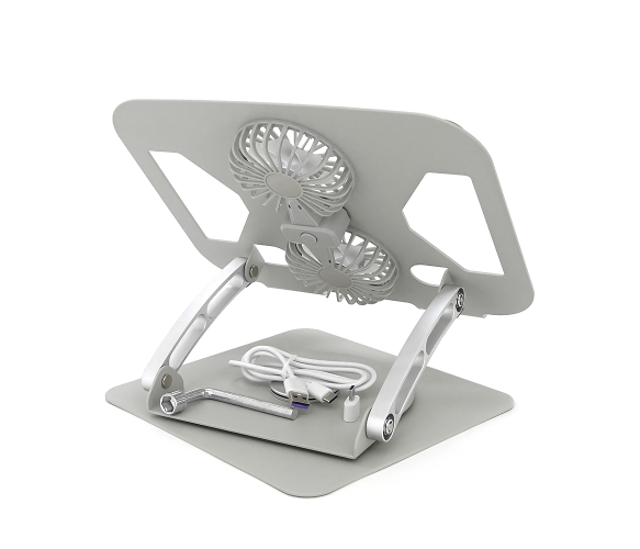 Оптимізуйте ваш робочий простір і подбайте про техніку з багатофункціональною складною підставкою T672-B. Ця модель, виконана з легкого та міцного алюмінію у стильному сріблястому кольорі, призначена для комфортної та безпечної роботи з ноутбуками та планшетами діагоналлю до 15 дюймів. Вбудована система активного охолодження з двома вентиляторами ефективно відводить надлишки тепла, запобігаючи перегріву пристрою і знижуючи шум від його власних кулерів, що особливо важливо при тривалому навантаженні.