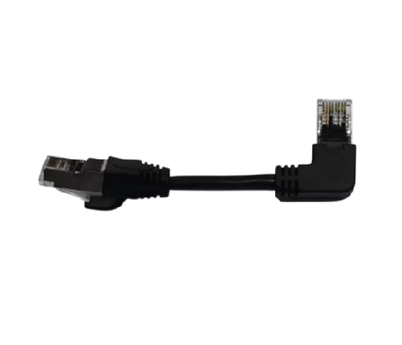 Патч-корд литий FTP, RJ45(прямий/кутовий), екранований, FTP5e 0.125m, patch D=4.9mm AWG26 1x90° CU, чорний, Q200