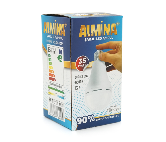Лампочка з акумуляторами ALMINA DL-1035, 220-240V, до 2 годин роботи, 4 години зарядки, 35W(300W), E27, 2500Лм, 6500K, Box