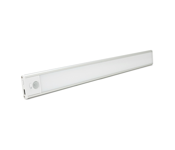 Світильник автоматично вмикається при виявленні руху і працює тільки при недостатньому рівні освітленості, що особливо актуально для місць, де світло потрібне на короткий час. Вбудований акумулятор забезпечує автономну роботу, а витягнутий корпус дозволяє рівномірно підсвічувати простір вздовж стіни, шафи чи проходу.