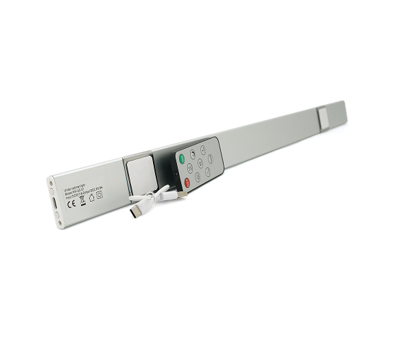 Світильник підтримує три режими освітлення (3000К, 4000К, 6000К), що дозволяє вибрати тепле, нейтральне або холодне світло залежно від ситуації та переваг. Управління здійснюється за допомогою зручного пульта, що робить використання максимально комфортним. Вбудований акумулятор 1500 mAh забезпечує автономну роботу без постійного підключення до мережі, а компактні розміри 600x40x10 мм та стильне сріблясте виконання дозволяють легко інтегрувати світильник у будь-яки