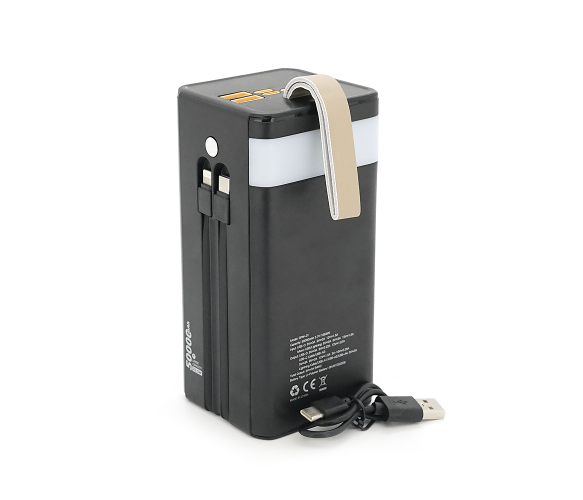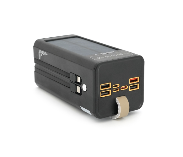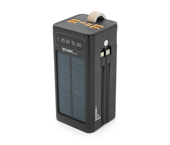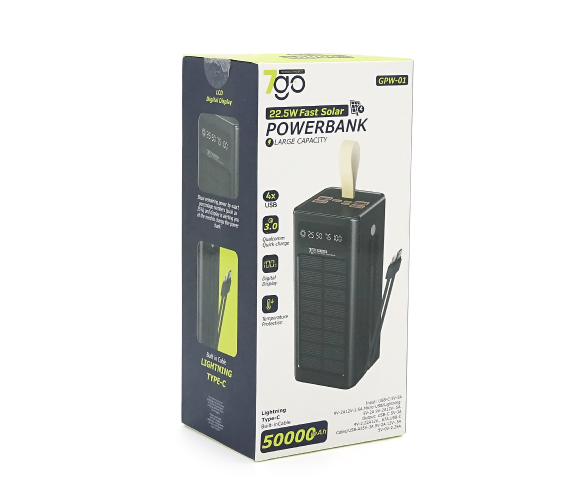 Powerbank 7GO GPW-01 50000mAh, Solar, Fast charge PD22.5W, Li-pol, LCD Display, Вхід:Type-C, Виходи: 2xUSB Type-C, 4xUSB Type-A, кабелю Type-C/Lightning, 1,080, Black, Box