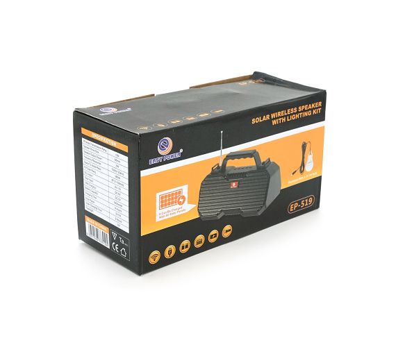 Універсальний супутник для активного відпочинку та будинку - переносний ліхтар EP-519 із сонячною панеллю. Цей компактний і потужний пристрій поєднує п'ять корисних функцій, забезпечуючи світло, звук і резервне живлення там, де це необхідно. Незамінний помічник для туристів, дачників, рибалок та для повсякденного використання як надійний аварійний комплект.
