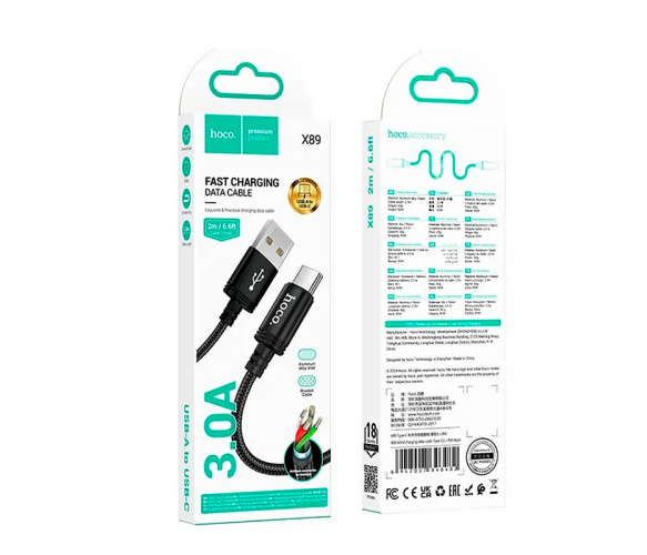 Кабель Hoco X89, Type-C-USB, 3A, Black, довжина 2м, BOX