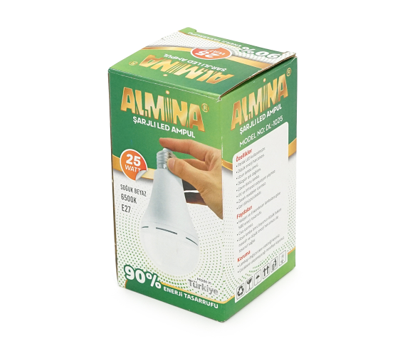 Лампочка з акумуляторами ALMINA DL-1025, 220-240V, до 2 годин роботи, 4 години зарядки, 25W(250W), E27, 2700Лм, 6500K, Box