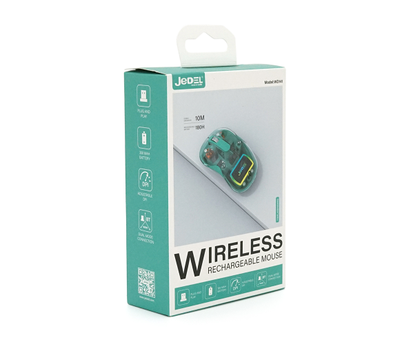 Бездротова миша JEDEL WD141T-G - це сучасний та стильний аксесуар, що поєднує в собі високу функціональність, надійну ергономіку та яскравий дизайн. Оснащена подвійним бездротовим підключенням через адаптер 2.4 ГГц та Bluetooth 5.0, ця миша забезпечує стабільний зв'язок на відстані до 10 метрів, звільняючи робочий простір від зайвих дротів. Вона створена для щоденної продуктивної роботи, навчання та мультимедійного використання із широким спектром пристроїв.