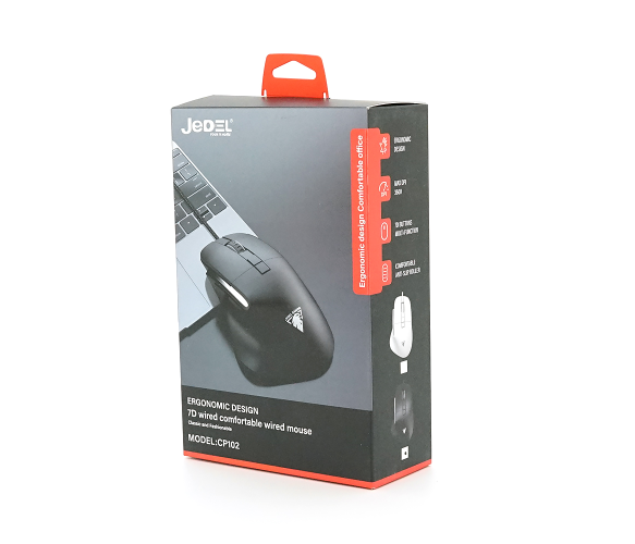 Миша провідна JEDEL CP102, 1200/1800/2400/3600DPI, кабель 1,5 м. 127x83x63 мм. 135 гр. White. Box