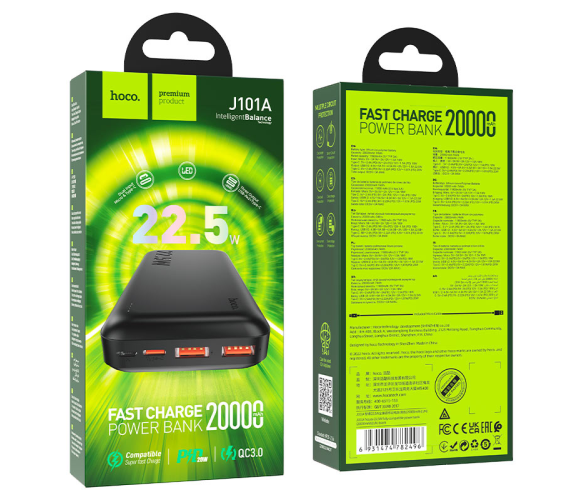 Power Bank HOCO J101A 20000mAh, 22.5W, Mix Color, 0.47kg, Box