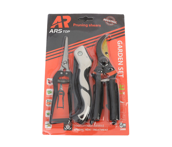 Набір садових інструментів із 3-х предметів YT-ARS1. Секатор великий, секатор малий, садова складана пилка. 280х180х35 мм. 0,280 кг. Box