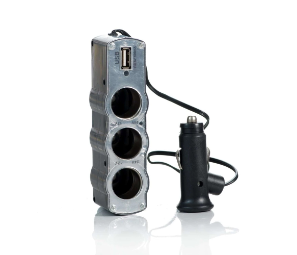 Опис: АЗУ розгалужувач WEIFENG призначений для підключення кількох пристроїв до автомобільного прикурювача. Він має три роз'єми 12V, один USB-порт, виконаний в сріблястому кольорі і упакований в блістер.