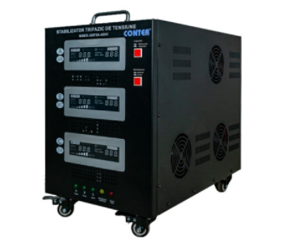 Стабілізатор напруги Conter MSER-30KVA/24KW-400V-V2 трифазний, сервопривід, монтажу підлоги, LED дисплей, діап225-450V, AC400±3%, колодка, 302x542x415 mm, 58kg