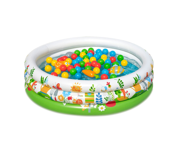 Басейн дитячий надувний + 50 кульок + 4 іграшки. 102х102х25см. Об'єм 101 літра. Ремкомплект. White/Green. Box