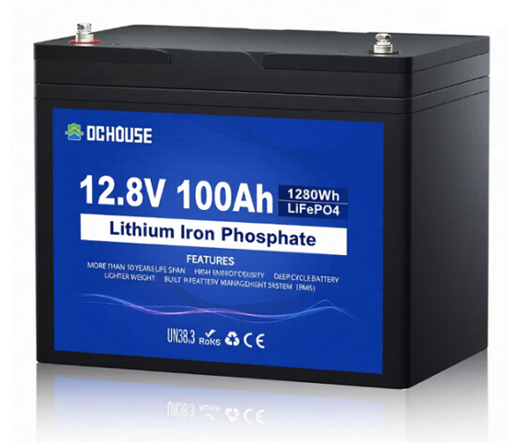 Аккумуляторная батарея DC HOUSE LiFePO4 12,8V 100Ah,(50/100A), 0°C до 55°C, гвинт M8, 260х168х209 мм. 10.8 кг
