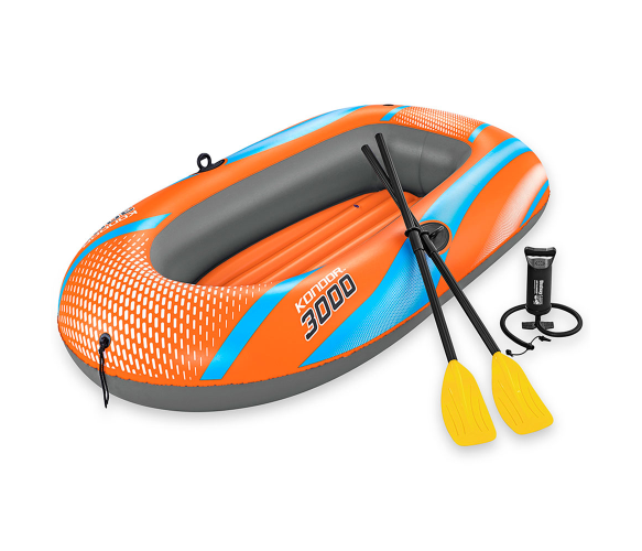 Човен надувний "Kondor 3000" + весла, ручний насос. 212x122см, трикамерна, надувне дно. Orange. Box