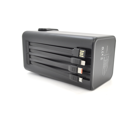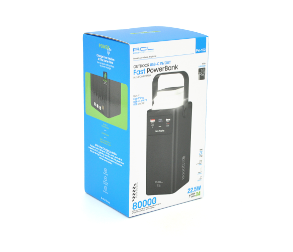 Powerbank ACL PW-152 80000mAh, 22.5W, 2xUSB, 4 кабелі (USB/Micro/Type-C/Lighting), Ліхтар, 1.4кг, Black, Box