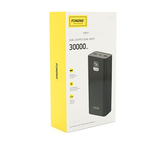 Power Bank FONENG P55 30000mAh, 2*USB+Tepe-C, Black, 0.580kg, Box