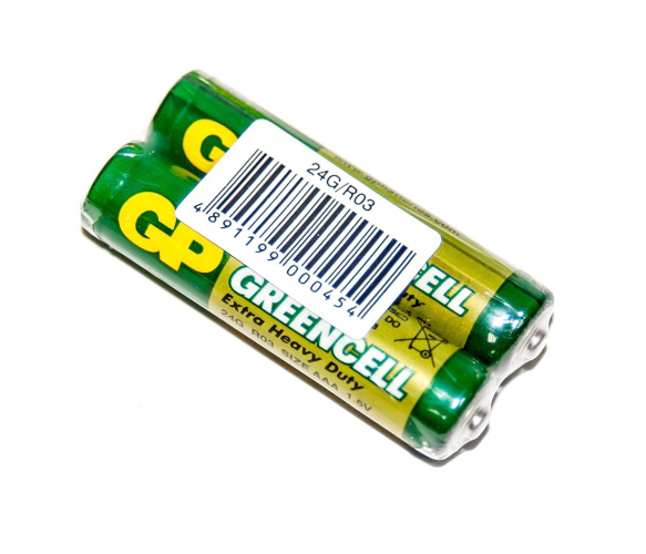 Батарейка сольова GP Greencell 24G-S2, AAA, 2 шт у вакуумній упаковці, ціна за упаковку