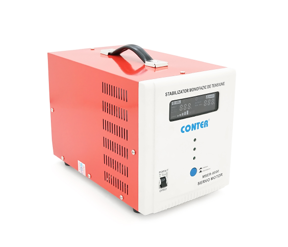 Стабілізатор напруги Conter MSER 8000 VA-V2/6000W однофазний, сервопривід, монтажу підлоги, LED дисплей, діапазон 130-260V, AC230±3%, 2*Shuko