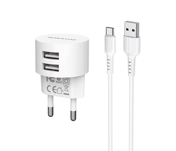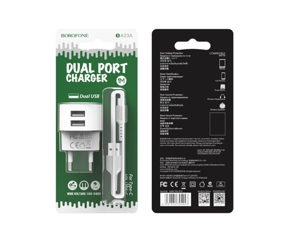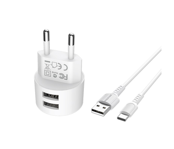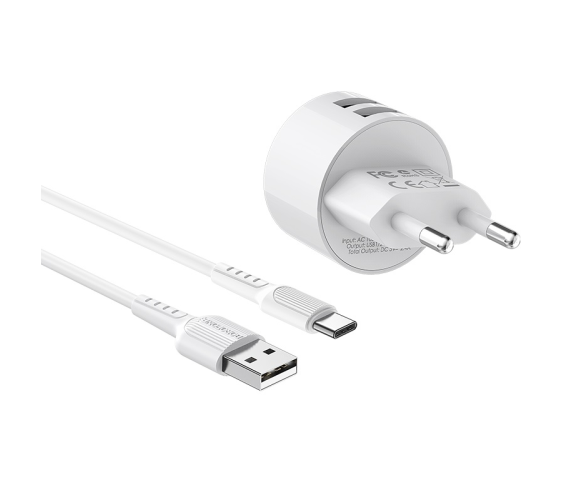 Набір BOROFONE BA23A СЗУ 2xUSB+ кабель USB/Type-C, 2.4A, 1м, White, Blister