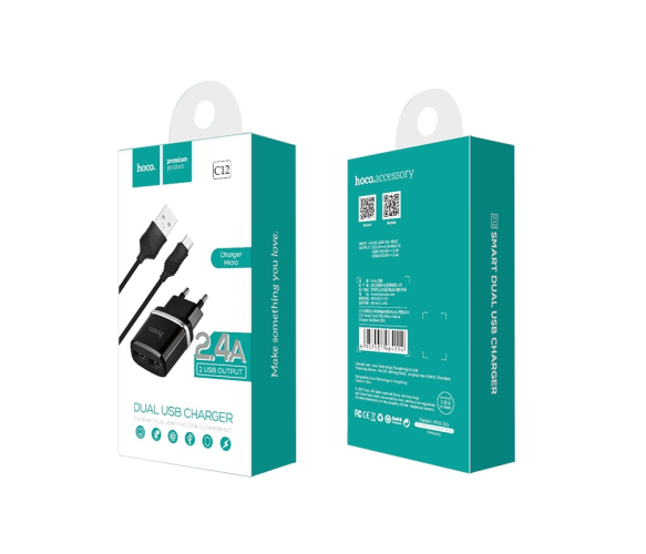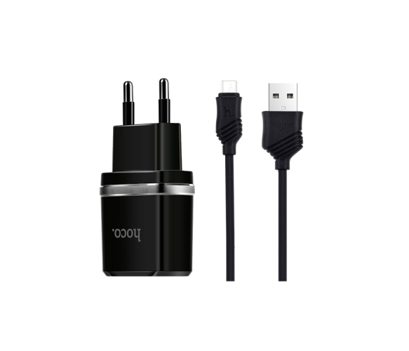 Набір СЗУ HOCO C12 Smart + кабель Micro, 2xUSB, 2.4A, кабель 1м, Black, Blister