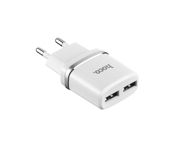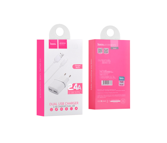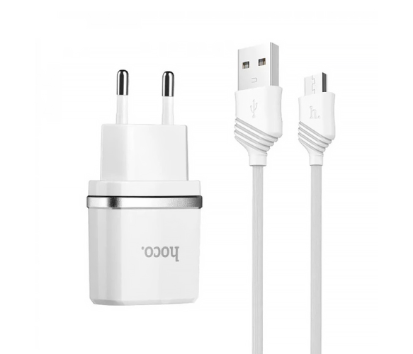 Набір СЗУ HOCO C12 Smart + кабель Micro, 2xUSB, 2.4A, кабель 1м, White, Blister