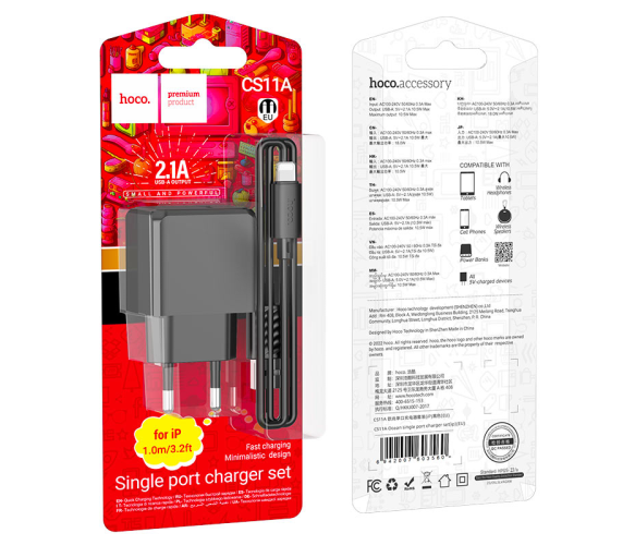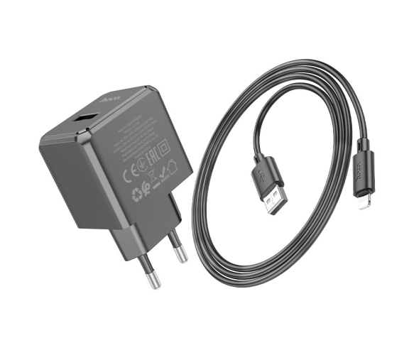 Набір СЗУ HOCO CS11A+ кабель Lighting, 1xUSB, 2.1A, кабель 1м, Black, Blister